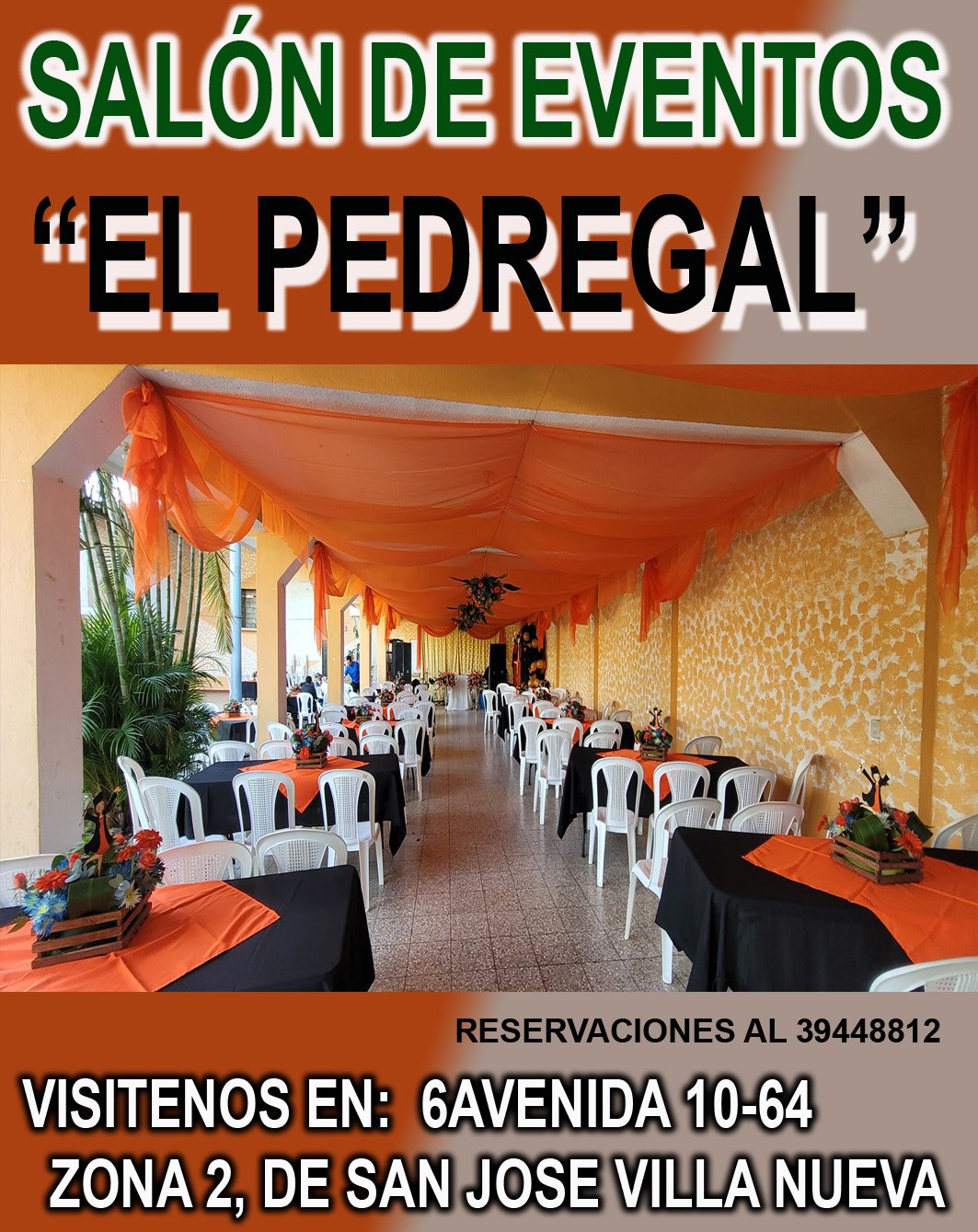 TODOS LOS PRECIOS SUBEN, MENOS EL PEDREGAL, EN SALON DE EVENTOS EL PEDREGAL QUE SE UBICA EN SAN JOSE VILLA NUEVA CUENTA CON UN AMPLIO ESPACIO, CON JARDIN, PARQUEO, 8 SANITARIOS, CAPACIDAD PARA 250 INVITADOS, EN OTRAS OCACIONES SE OBSERVO MAS DE 400 INVITADOS.