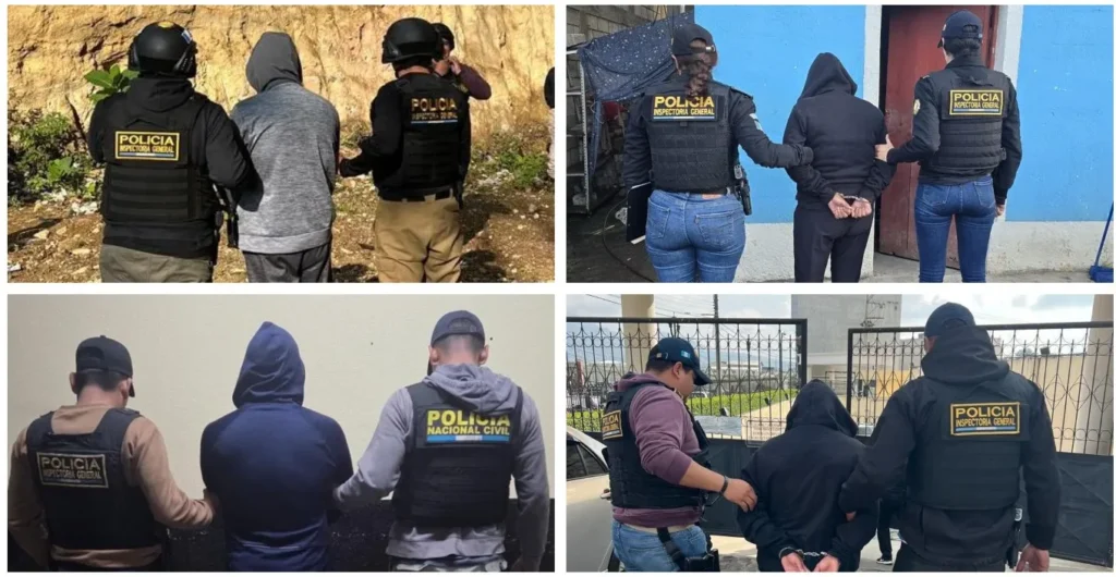 Los detenidos fueron identificados como Erick M., Byron P., Jacqueline V. y Fernando G., todos integrantes de la División de Fuerzas Especiales (FEP) de la PNC, según informaron fuentes oficiales.